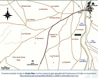 Para conocer más sobre la mina de Lapis Specularis "Pozolacueva" lo mejor es descargarse el siguiente archivo, se trata de una guía creada con el PLAMIT y fue presentada en FITUR2016, es posible que tarde un poco en descargarse la imagen: