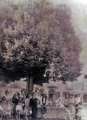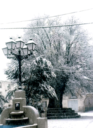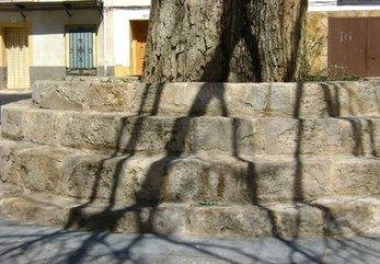 Otro elemento de la plaza es la fuente que ha sido sustituida dos veces en los últimos años, pasando de una de piedra circular a otra posterior de ladrillo y la actual de piedra artificial.