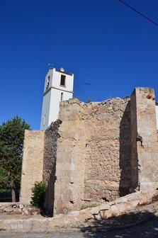 La antigua Iglesia, hoy tristemente desaparecida se trataba de una iglesia de estilo tardorománico, del S. XVI, del estilo de muchas de las del Priorato de Uclés, y por las imágenes que se conservan y los testimonios de los vecinos sería muy parecida a la que hoy aún se conserva en la localidad de Belinchón. De aspecto cerrado y rígido al exterior, con varios contrafuertes que intensificarían su aspecto de fortaleza y con torre campanario en la parte sur pero muy cerca de los pies. Tenía dos portadas una al sur y otra al oeste.