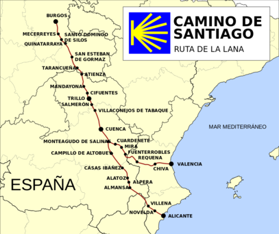 La Ruta Jacobea de la Lana es uno de los más antiguos trazados comerciales peninsulares. La primera guía editada del Camino de la Lana, "La Ruta de la Lana. Guía del Peregrino a Santiago de Compostela. De Cuenca a Burgos", de Vicente Malabia y Jesús Herminio Pareja, (Editorial Alfonsópolis, 1999) describe el tramo entre Monteagudo de las Salinas-Burgos, en reconocimiento a 3 peregrinos que salieron desde Monteagudo de las Salinas en 1624 para cumplir un voto que habían hecho de visitar la tumba del Apóstol Santiago.